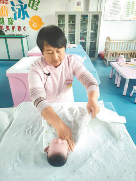 在“天鎮(zhèn)保姆”培訓(xùn)基地,培訓(xùn)老師正在示范教學(xué)。