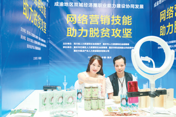 川渝人社部門在渝舉辦了網(wǎng)絡(luò)營銷技能培訓(xùn),35名主播現(xiàn)場為川渝兩地35個地區(qū)直播扶貧產(chǎn)品。